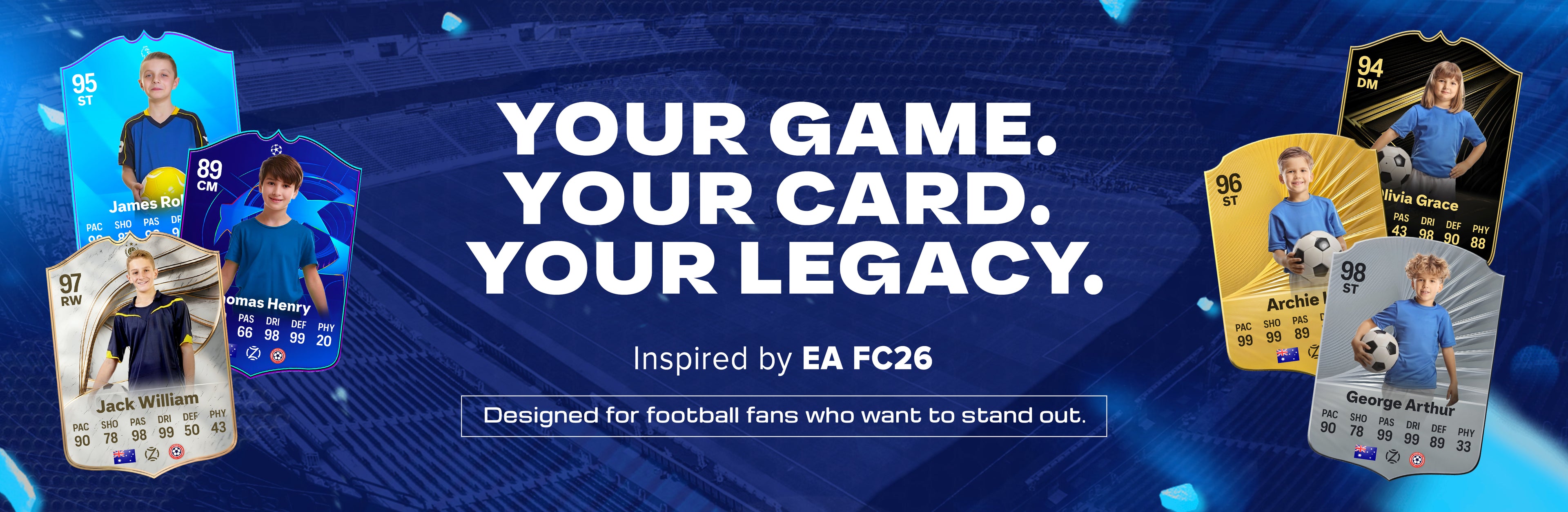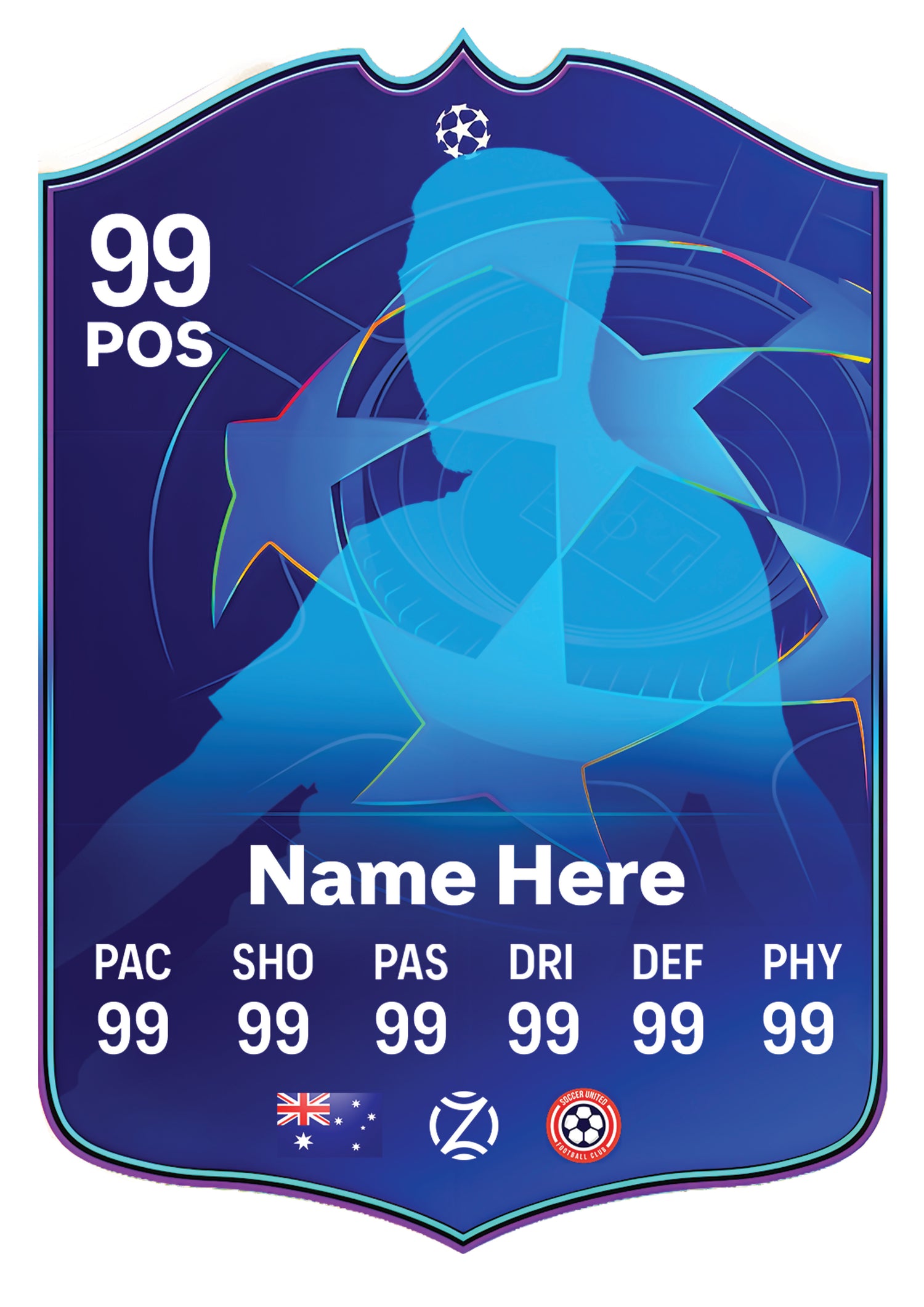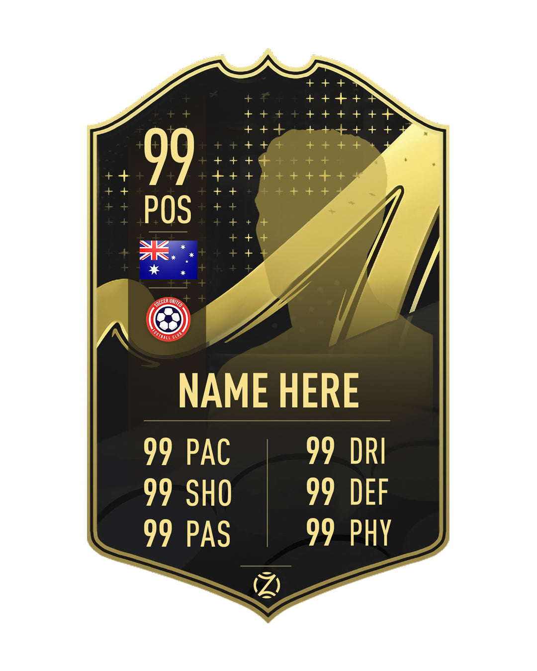 Creating a personalized football card has never been simpler thanks to OZ Football Card. Just select your preferred card design and size, and then proceed with adding your name, overall rating, nationality, club and the stats of football skills ranging from 1 to 99. And don't forget to upload your photo. If you have a special request please add it to special request box
